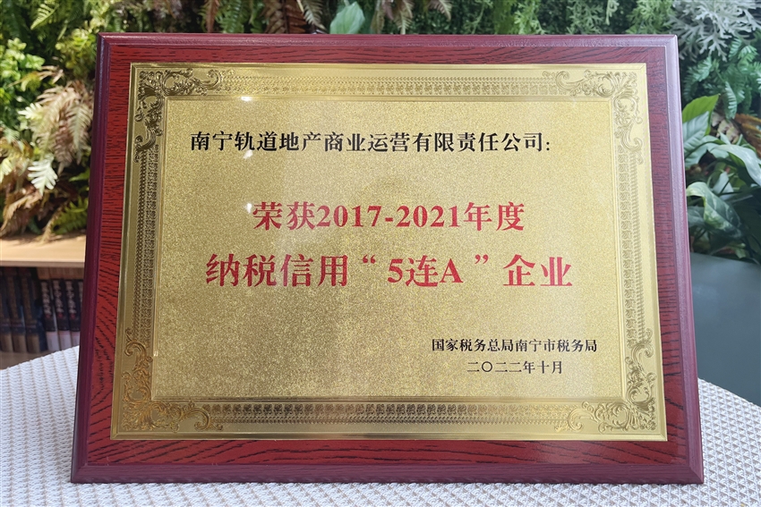 近日,軌道地產(chǎn)商業(yè)公司榮獲國家稅務總局南寧市稅務局授予的納稅信用“5連A”企業(yè)榮譽稱號。獲此殊榮,不僅是稅務機關對軌道地產(chǎn)商業(yè)公司稅務管理工作的充分肯定,更為軌道地產(chǎn)商業(yè)公司走高質(zhì)量發(fā)展之路提供了強有力的支撐。
