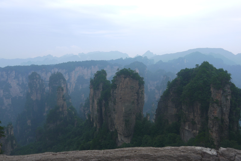 我們的第二站:袁家界。在這里,我感受到了一個現(xiàn)代高科技帶來的震撼。站在高度300多米的百龍?zhí)焯莸耐该飨潴w里,隨著天梯的緩緩上升,我們就像鳥兒一樣穿出山體,劈開云霧,沖天而起,一種從未有過的刺激感引得我們聲聲尖叫。到達(dá)山頂,一排排石巖赫然展現(xiàn)在我們眼前,高低錯落,森然有序,儼然列隊的將士,聽導(dǎo)游說,這便是48將軍巖,真是“壯如其名”。