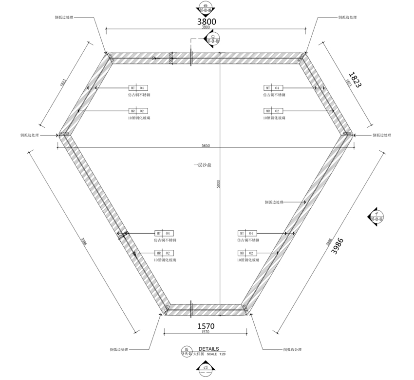 沙盤底座尺寸暫定如下圖所示,具體以采購(gòu)文件發(fā)布時(shí)提供的施工圖為準(zhǔn):